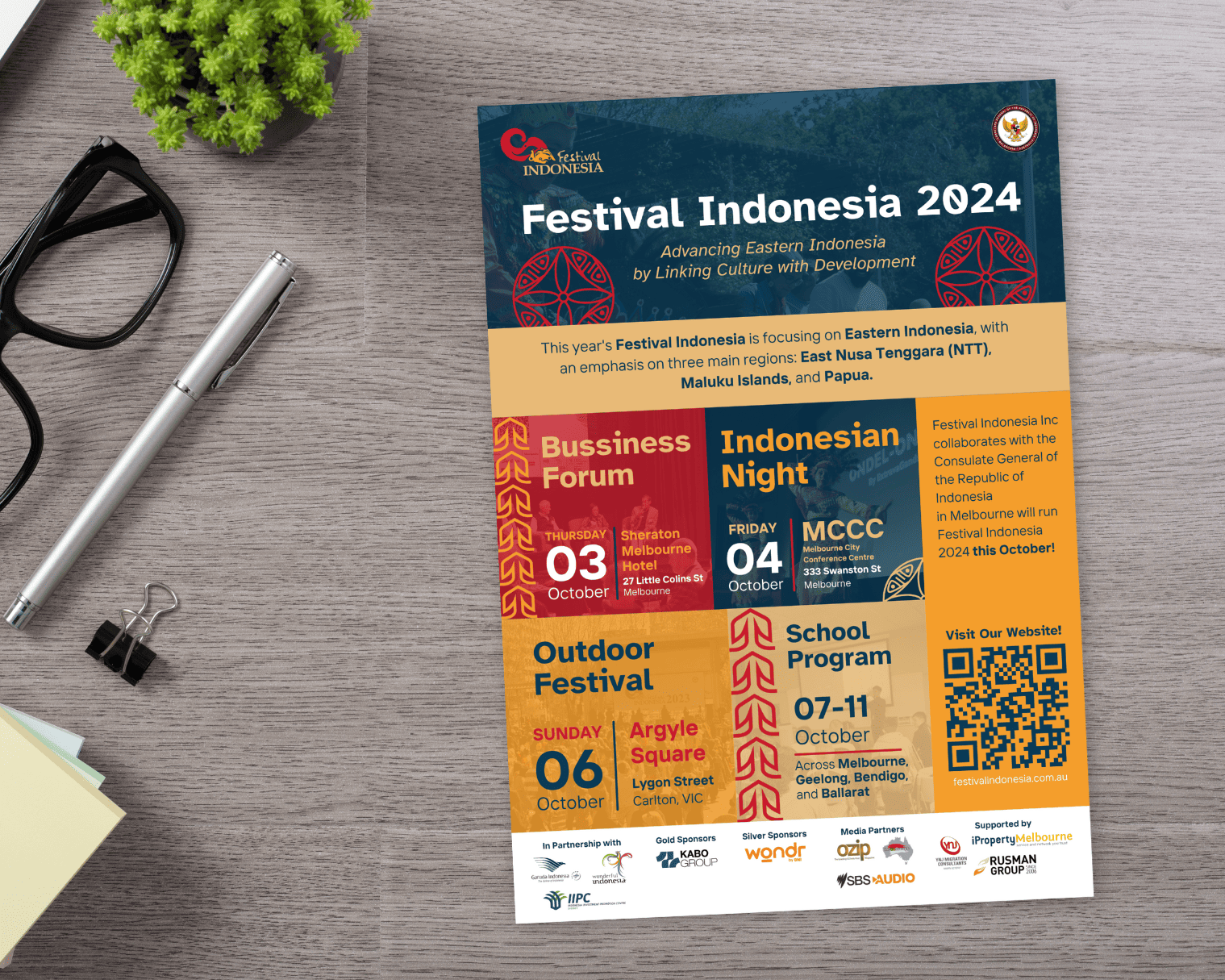Festival Indonesia 2024 lit up Melbourne in October with the theme “Advancing Eastern Indonesia by Linking Culture with Development.” The festival celebrated the vibrant cultures of Eastern Indonesia through performances, business showcases, and community connection—following the record-breaking 2023 edition that united over 1,200 Manortor dancers outside Indonesia.